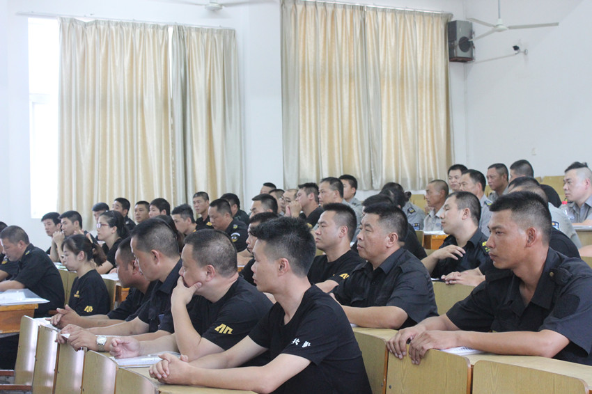 此次培訓(xùn)為期十天,共有62名學(xué)員參訓(xùn),課程包括保安職業(yè)道德、保安概述、突發(fā)事件處置、安全技術(shù)防范等課程內(nèi)容。
