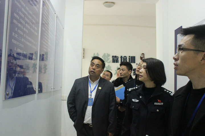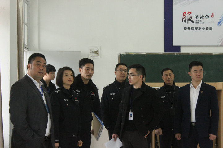 11月7日下午,浙江省公安廳治安總隊(duì)調(diào)研員陳建躍一行領(lǐng)導(dǎo),在溫州市公安局治安支隊(duì)副支隊(duì)長林超民、溫州市公安局龍灣區(qū)分局副局長程遠(yuǎn)的陪同下,參觀了溫州市保安學(xué)校、溫州國泰保安公司,聽取了溫州市保安學(xué)校的培訓(xùn)工作及溫州國泰公司的經(jīng)營情況。陳建躍調(diào)研員充分肯定我校的保安培訓(xùn)工作:1.能夠積極貫徹落實(shí)省市相關(guān)文件精神。2.培訓(xùn)期間能嚴(yán)格按照培訓(xùn)大綱做好教育教學(xué)工作。3.培訓(xùn)考核工作根據(jù)溫州市職業(yè)技能鑒定指導(dǎo)中心要求開展。同時提出在今后的保安職業(yè)技能培訓(xùn)工作中,要給予學(xué)校大力的支持。