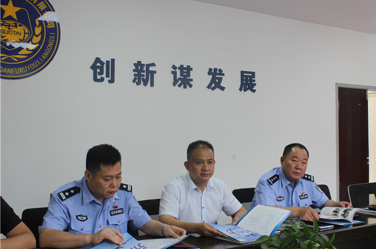 5月21日上午,貴州省黔西公安局黨委副書記副局長羅駿、黔西縣公安局治安大隊大隊長伍勇等一行4人在溫州市龍灣區(qū)公安分局副局長吳志康、黨委委員王欽、治安大隊民警何干巨、龍灣區(qū)保安協(xié)會會長吳成建的陪同下蒞臨溫州國泰保安服務有限公司及溫州市保安職業(yè)學??疾熘笇?。會上溫州市保安職業(yè)學校校長鄭夫貴介紹了學校辦學工作及保安公司運營工作情況。
