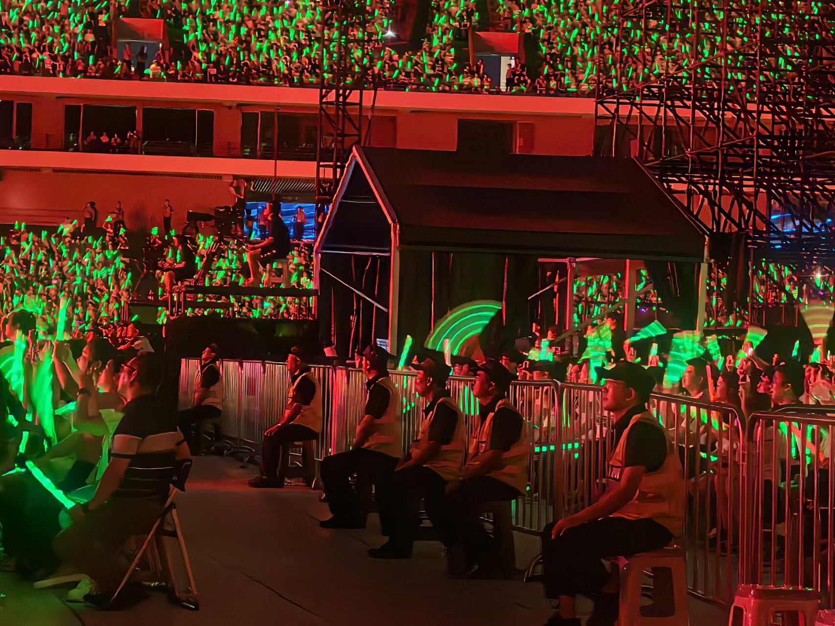 然天空作美,演唱會(huì)當(dāng)天艷陽(yáng)高照,夜晚明月懸空,為演唱會(huì)更添一絲中秋氛圍。演唱會(huì)期間,現(xiàn)場(chǎng)保安隊(duì)員各司其職、協(xié)同作戰(zhàn),做到隱患排查細(xì)致入微、安全檢查安全檢查不留死角,現(xiàn)場(chǎng)秩序維護(hù)得井井有條,做到安保全員覆蓋,無(wú)縫對(duì)接;全體安保執(zhí)勤人員嚴(yán)格落實(shí)各項(xiàng)安保方案,做到“定人、定崗、定責(zé)”,以卓越的標(biāo)準(zhǔn)和嚴(yán)謹(jǐn)?shù)膽B(tài)度,構(gòu)筑起堅(jiān)不可摧的安全防線,為廣大歌迷群眾營(yíng)造了一個(gè)安全、穩(wěn)定、和諧的觀演環(huán)境。