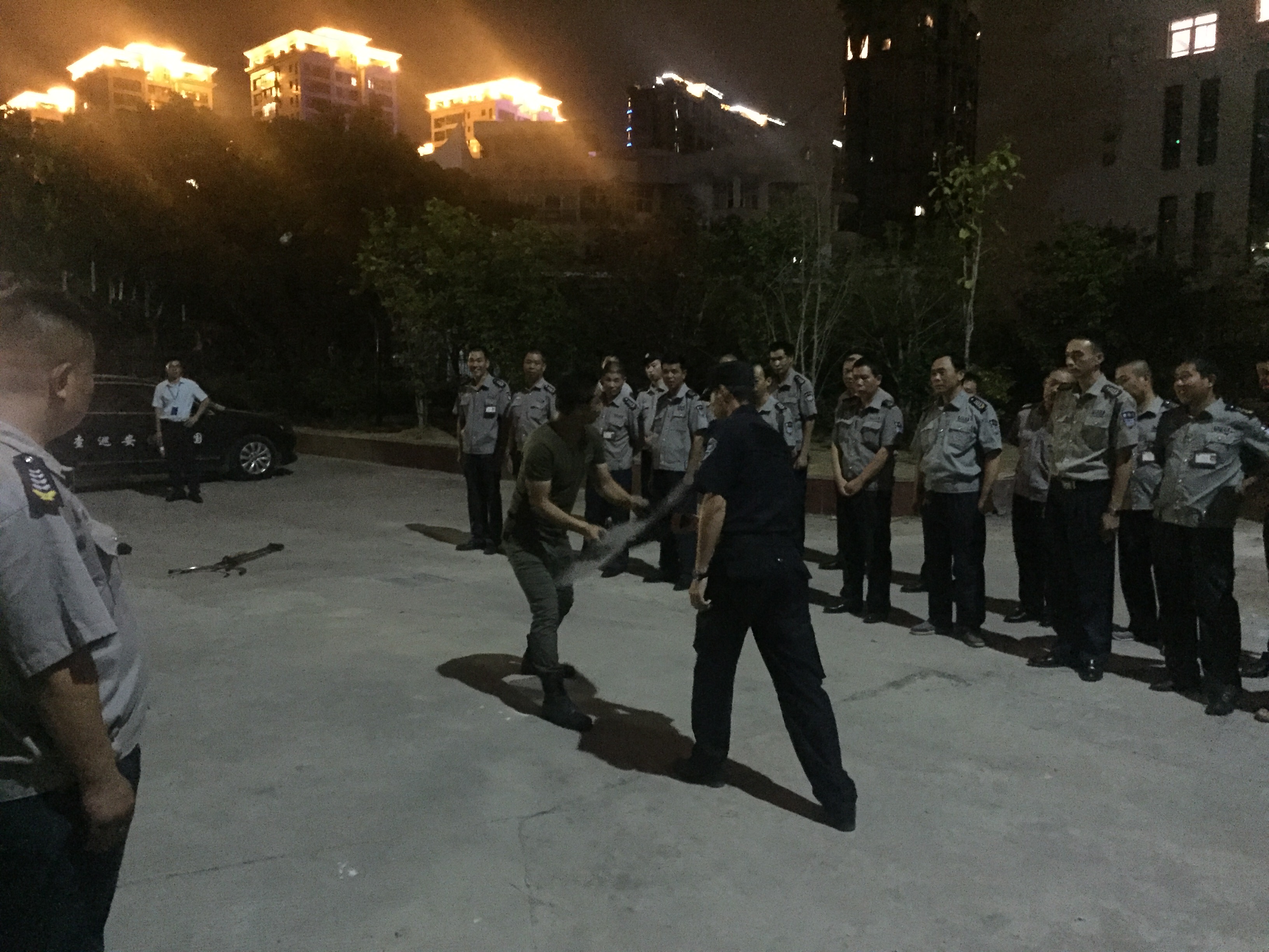 會后,全部保安員同志在操場上進行了隊列會操,同時又加強了警棍術、盾牌、鋼叉的學習。