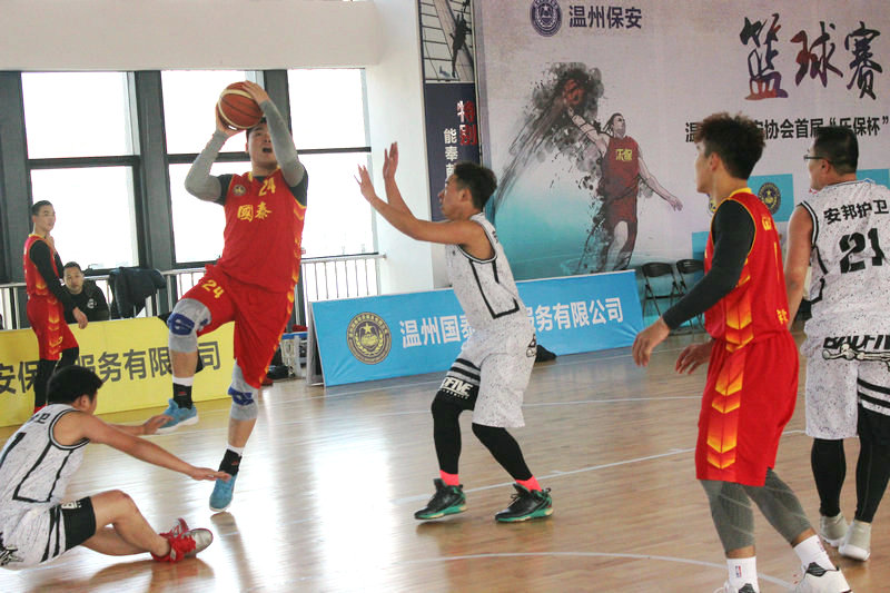 由溫州市保安協(xié)會主辦,樂清保安服務(wù)有限公司承辦的“樂保杯”籃球賽在2017年12月15日早上8點半在樂清特警隊四樓舉行。當天上午10點多我們國泰保安服務(wù)有限公司的籃球隊以76:44贏了溫州中安保安公司籃球隊。15日晚上八點10分,國泰隊對陣樂保隊,我們國泰隊以91:73贏了樂清保安公司籃球隊,16日早上,國泰隊又以68:33贏了溫州保安總公司,17日上午國泰隊以57比38國泰隊戰(zhàn)勝了安邦護衛(wèi)籃球隊,贏得了小組賽中的每一場球賽,最終以小組第一名出線,決戰(zhàn)19日晚上的冠亞軍賽。